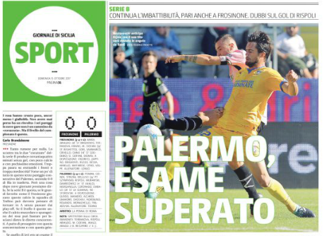 L'edizione odierna de "Il Giornale di Sicilia" ha analizzato il match pareggiato ieri dal Palermo contro il Frosinone. Ecco quanto...