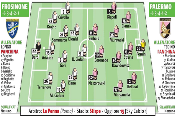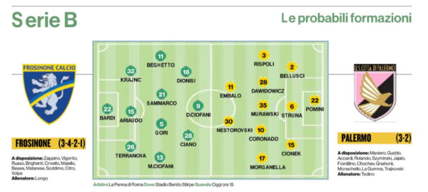 L'edizione odierna de "Il Giornale di Sicilia" ha stilato le probabili formazioni del match in programma oggi tra Frosinone e...