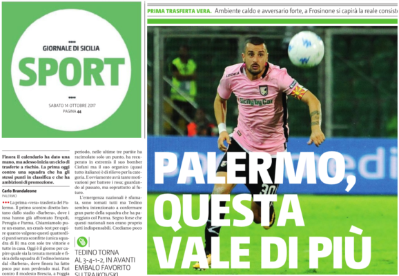L'edizione odierna de "Il Giornale di Sicilia" ha analizzato la gara tra Frosinone e Palermo, valida per la vetta della...