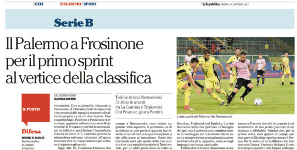 "Due stagioni fa, vincendo a Frosinone, il Palermo diede il colpo d’ali che consentì alla squadra rosanero di salvarsi proprio...
