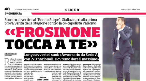 "Banco di prova importante per il Frosinone chiamato oggi a riscattare la sconfitta incassata a Novara. Avversario tutt’altro che semplice...