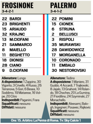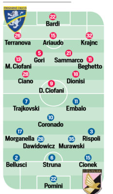 Tuttosport: le probabili formazioni di Frosinone-Palermo