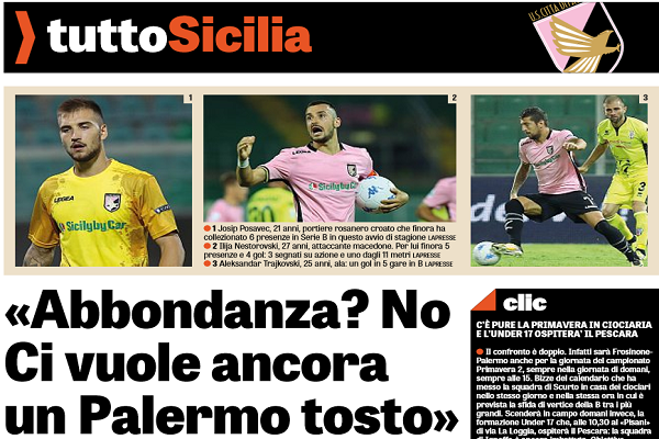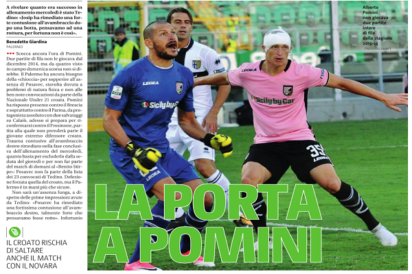 L'edizione odierna de "Il Giornale di Sicilia" dedica spazio ad Alberto Pomini, che domani contro il Frosinone sarà di nuovo...