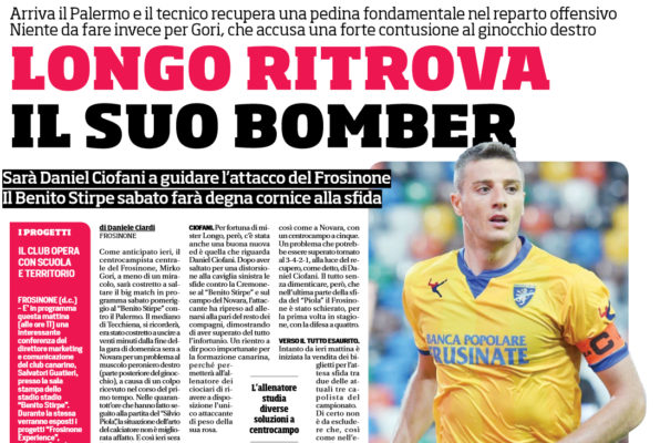 "Come anticipato ieri, il centrocampista centrale del Frosinone, Mirko Gori, a meno di un miracolo, sarà costretto a saltare il...