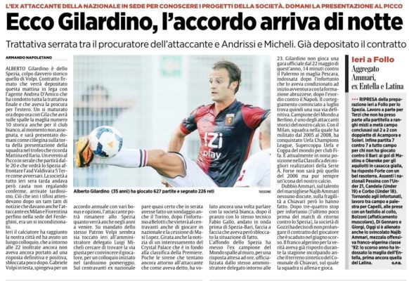 “Gilardino è dello Spezia, colpo davvero storico quello di Volpi. Contratto firmato che verrà depositato questa mattina in lega con...