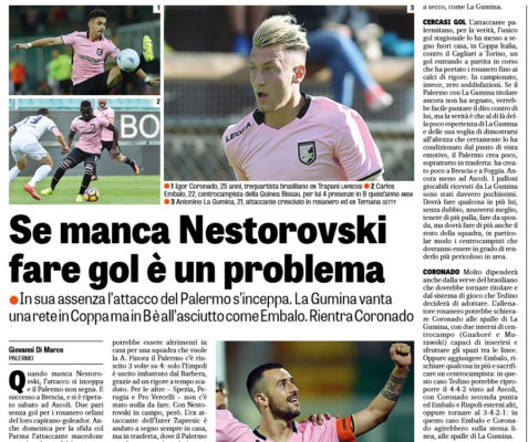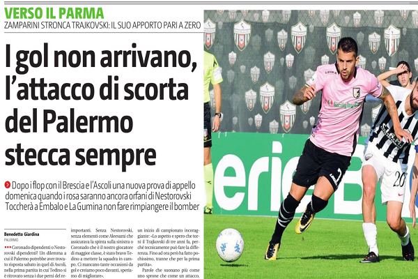 "Quando manca Nestorovski, l’attacco si inceppa e il Palermo non segna. È successo a Brescia, e si è ripetuto sabato...