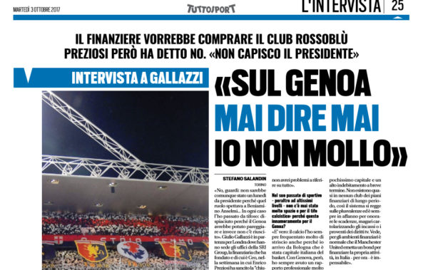 Tuttosport: “Gallazzi: «Sul Genoa mai dire mai, io non mollo»”