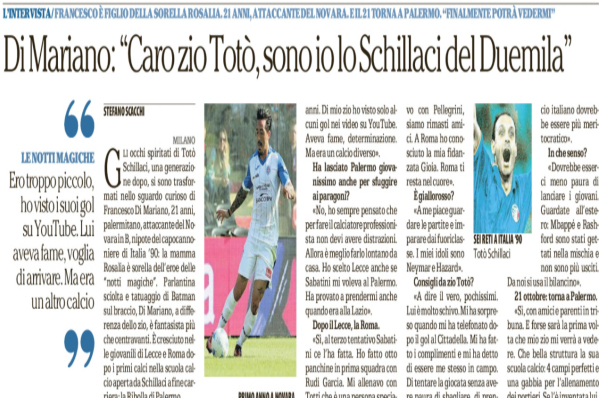 Repubblica: “Di Mariano: «Caro zio Totò, sono io lo Schillaci del duemila. Sabatini mi voleva in rosa»”