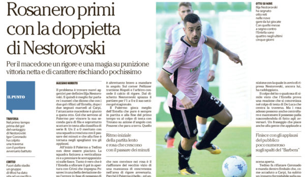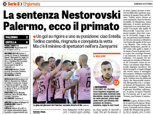 L'edizione odierna de "La Repubblica" ha stilato le pagelle del match vinto ieri dal Palermo contro la Virtus Entella. Ecco...