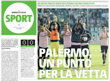 L'edizione odierna de "Il Giornale di Sicilia" ha analizzato il pari rimediato ieri dal Palermo sul campo dell'Ascoli. Ecco quanto...