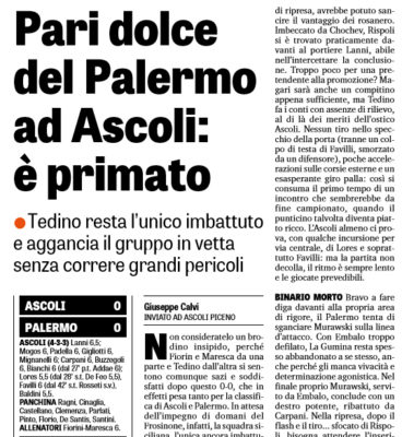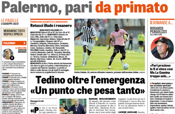 Gazzetta dello Sport: “L’analisi di Rosario Pergolizzi: «Pari prezioso la B si vince così. Ma La Gumina troppo solo…»”