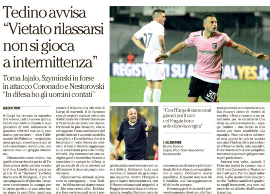 L'edizione odierna de "Il Corriere dello Sport" analizza quella che potrebbe essere le probabili formazioni di Palermo-Virtus Entella. Ecco quanto...