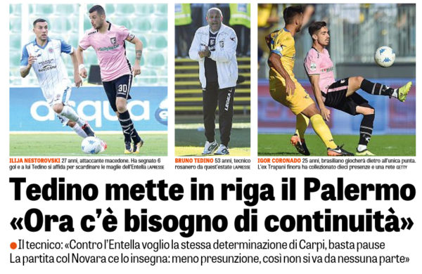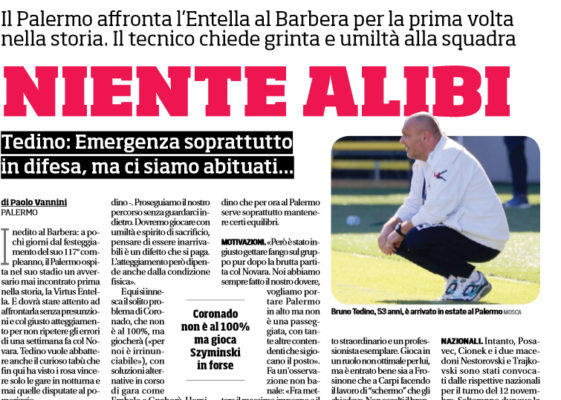 Gazzetta dello Sport: ‘Le probabili formazioni di Palermo-Entella (FOTO)’