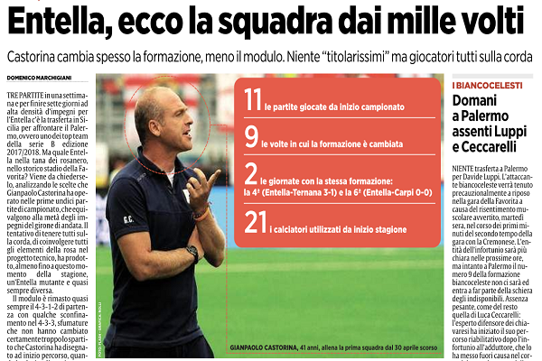 L'edizione odierna de "Il Corriere dello Sport" analizza quella che potrebbe essere la probabile formazione di Tedino contro la Virtus...