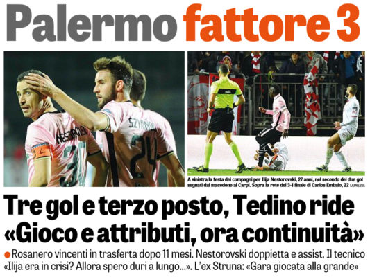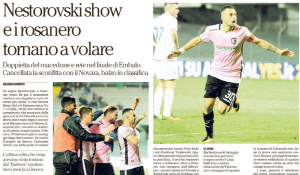 Tuttosport: “Fa tutto Nestorovski. Le pagelle di Carpi-Palermo”