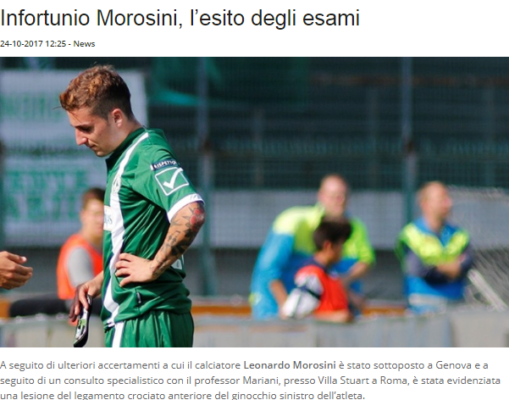 "A seguito di ulteriori accertamenti a cui il calciatore Leonardo Morosini è stato sottoposto a Genova e a seguito di...