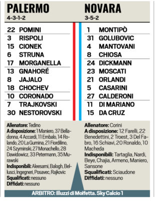 L'edizione odierna di Tuttosport ha stilato le probabili formazioni di Palermo-Novara in programma oggi alle 15. Ecco in alto le...