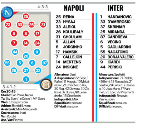 L'edizione odierna di Tuttosport ha stilato le probabili formazioni del match di serie A in programma quest'oggi tra Napoli e...