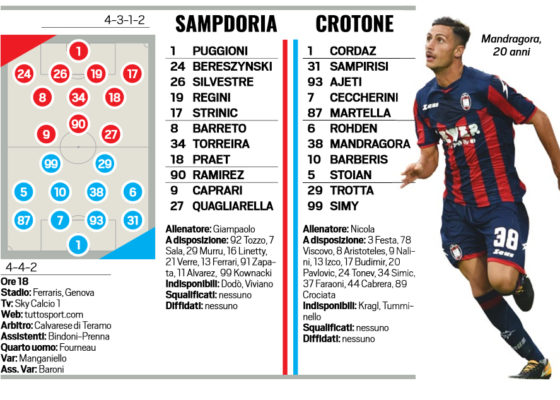 L'edizione odierna di Tuttosport ha stilato le probabili formazioni del match in programma oggi tra Sampdoria e Crotone. Ecco in...
