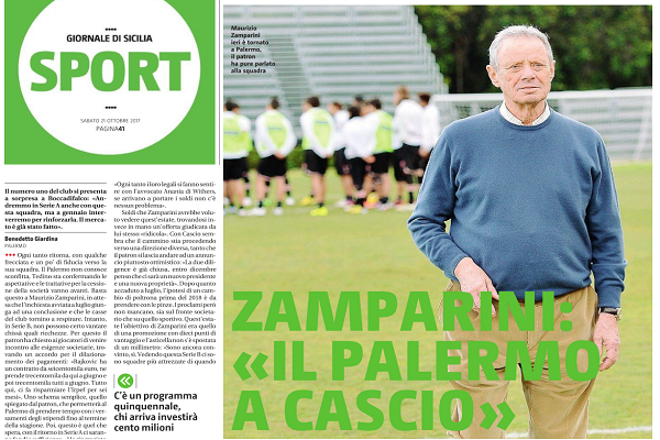 L'edizione odierna de "Il Giornale di Sicilia" racconta del blitz in città di Maurizio Zamparini, ecco un estratto: ". Un...