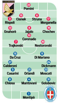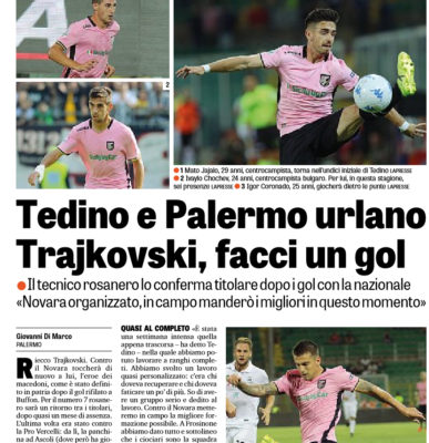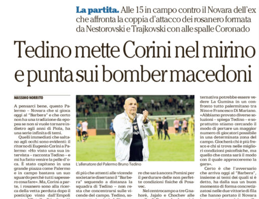 Corriere dello Sport: “Tedino torna alla difesa a 4. Le probabili formazioni di Palermo-Novara”