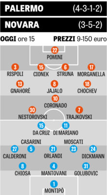 L'edizione odierna de "La Gazzetta dello Sport" ha stilato le probabili formazioni di Palermo-Novara. Ecco le ultime: "Palermo Posavec assente:...