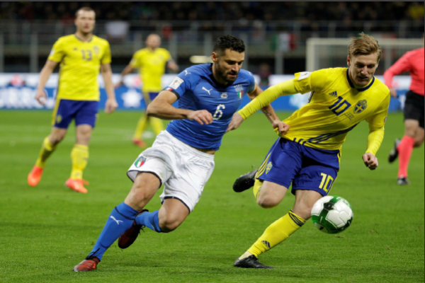 Termina il primo tempo del playoff per i Mondiali in Russia del 2018 tra Italia e Svezia. Gli azzurri di...