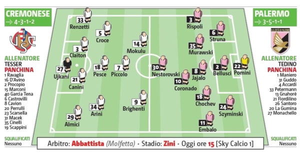 Match ad alta quota tra Cremonese e Palermo oggi alle 15. La Cremonese dovrà rinunciare ad uno dei calciatori più...