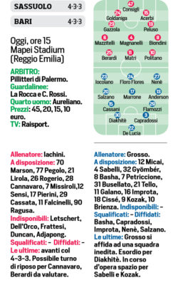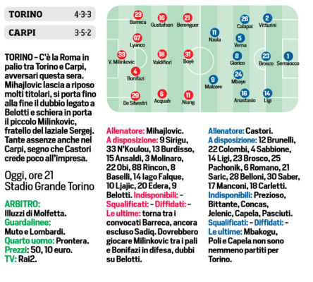 L'edizione odierna de "Il Corriere dello Sport" ha stilato le probabili formazioni del match di Tim Cup in programma oggi...