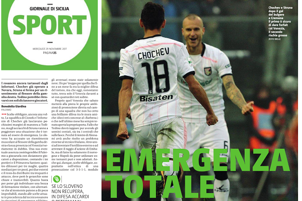 L'edizione odierna de "Il Giornale di Sicilia" ha analizzato lo stato di emergenza della squadra di Tedino, con Struna ad...