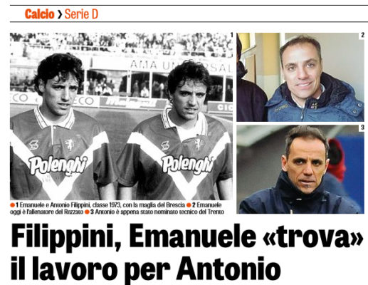 Gazzetta dello Sport: “La curiosità. Filippini, Emanuele «trova» il lavoro per Antonio. Ecco come”