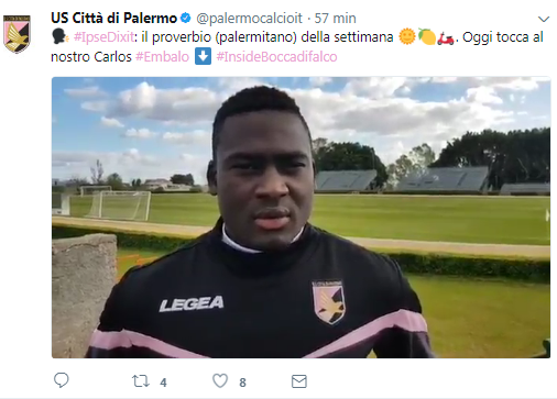 Consueto appuntamento con il Palermo e il proverbio palermitano. Questa volta tocca all'attaccante Carlos Embalo. Di seguito il video: http://...