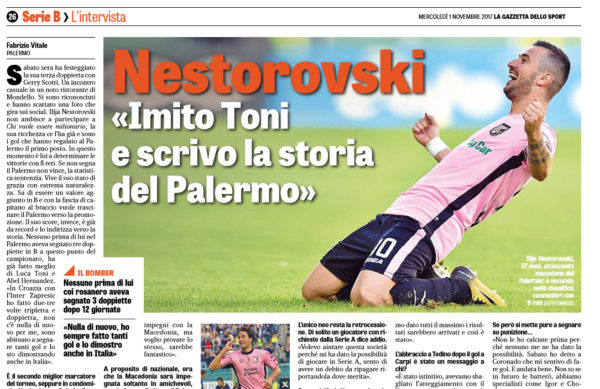L'edizione odierna de "La Gazzetta dello Sport" ha realizzato una lunga intervista a Ilija Nestorovski. Ecco tutte le parole del...