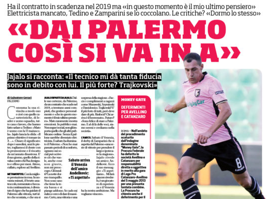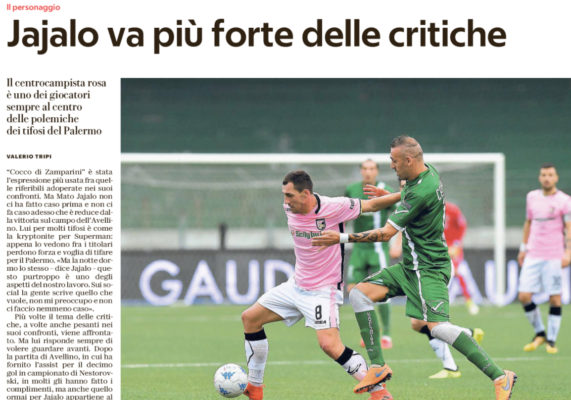 L'edizione odierna de "La Repubblica" riporta nell'edizione odierna le parole rilasciate ieri in conferenza stampa dal centrocampista rosanero Jajalo: "Il...