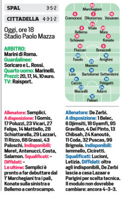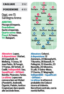 In alto, ecco le probabili formazioni del match di Tim Cup in programma questa sera alle ore 21 che vedrà...