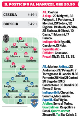 L'edizione odierna de "Il Corriere dello Sport" ha stilato le probabili formazioni del match in programma oggi tra Cesena e...