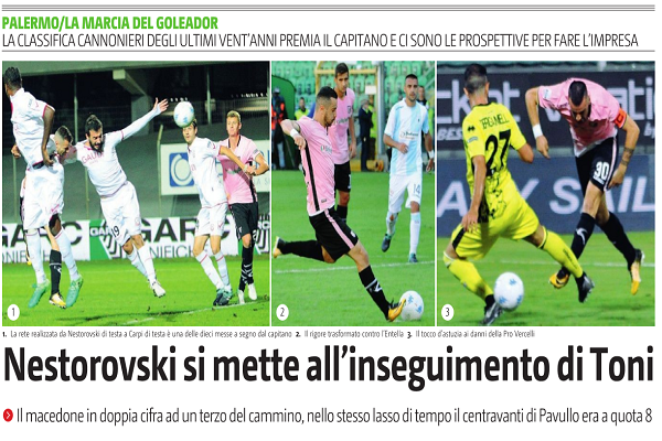 Giornale di Sicilia: “Nestorovski si mette all’inseguimento di Toni”