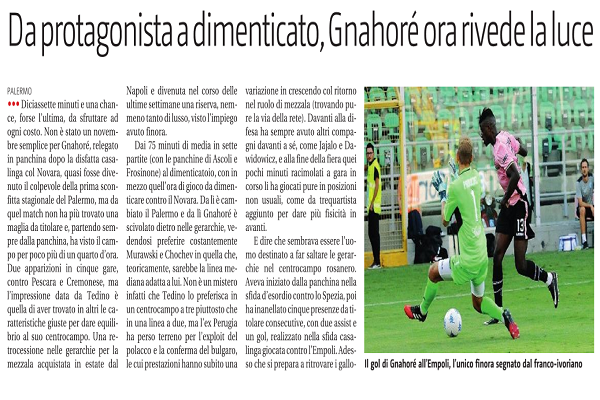 L'edizione odierna de "Il Giornale di Sicilia" ha analizzato la situazione di Gnahoré, da relegato in panchina, adesso si prepara...