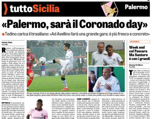 Gazzetta dello Sport: “Palermo, sarà il Coronado day». Tedino carica il brasiliano: «Ad Avellino farà una grande gara: è più fresco e concreto»”