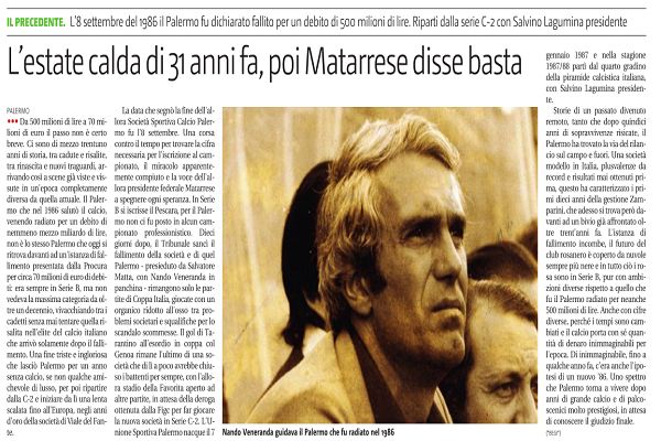 Dopo l'istanza di fallimento presentata ieri dalla procura, l'edizione odierna de "Il Giornale di Sicilia" ricorda un precedente fallimento che...