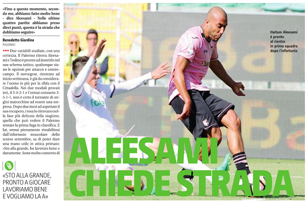 L'edizione odierna de "Il Giornale di Sicilia" scrive in merito al rientro di Aleesami. Ecco quanto si legge: "Due variabili...