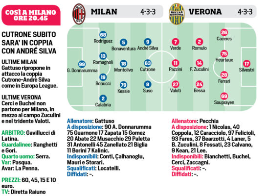 L'edizione odierna de "Il Corriere dello Sport" ha stilato le probabili formazioni del match in programma oggi in Tim Cup...