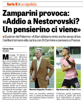 "Mentre è di nuovo vivo l’interesse del Palermo per Samuel Di Carmine. È il nome per affiancare Nestorovsaki o, in...