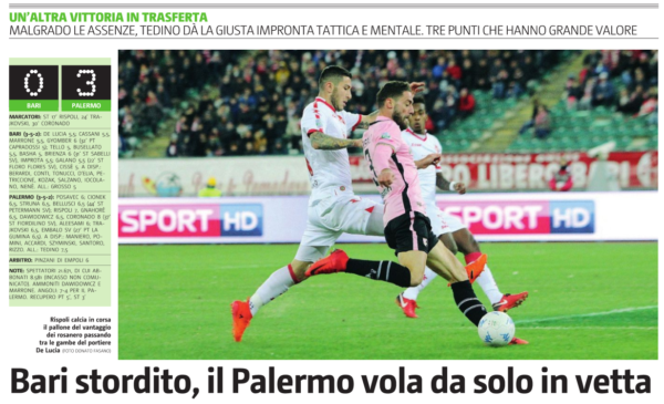 L'edizione odierna de "Il Giornale di Sicilia" ha analizzato la riconquista della vetta, dopo la vittoria conquistata a Bari. Ecco...