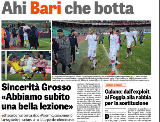 "Una serataccia! Per il Bari e per Fabio Grosso, costretti ad inchinarsi davanti ad un Palermo privo dei centrocampisti titolari...