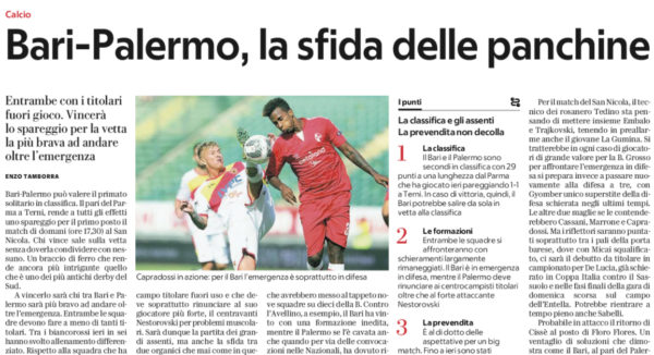 "Entrambe con i titolari fuori gioco. Vincerà lo spareggio per la vetta la più brava ad andare oltre l’emergenza Bari-Palermo...