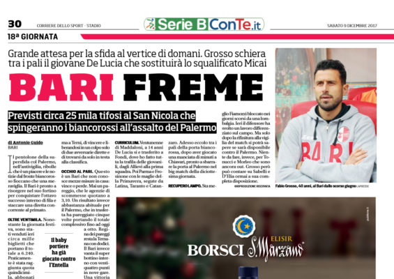 L'edizione odierna de "Il Corriere dello Sport" ha stilato le probabili formazioni del match in programma domani tra Bari e...