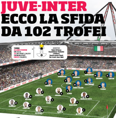 L'edizione odierna de "Il Corriere dello Sport" ha stilato le probabili formazioni del match Juventus-Inter, il derby in programma oggi....
