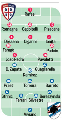 Corriere dello Sport: “Alle 18 Cagliari-Sampdoria. Le probabili formazioni”