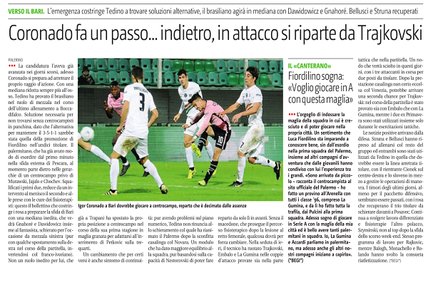 L'edizione odierna de "Il Giornale di Sicilia" ha analizzato quella che potrebbe essere la nuova posizione in campo di Coronado....